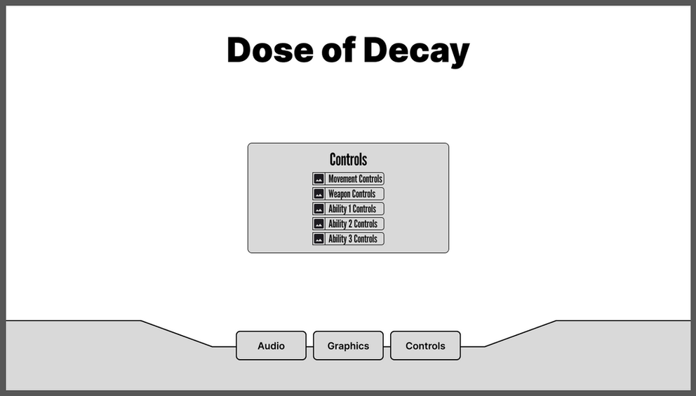 Designed low-fidelity wireframes in Adobe Photoshop for the Main Menu, Settings, and HUD (Heads Up Display).